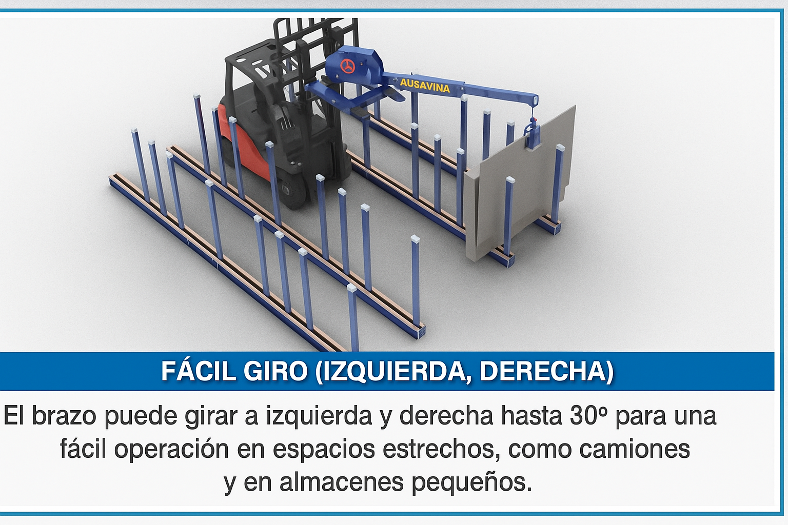 Una solución versátil, potente y precisa, ideal para talleres y almacenes que buscan optimizar la manipulación de materiales de gran formato con total seguridad.
