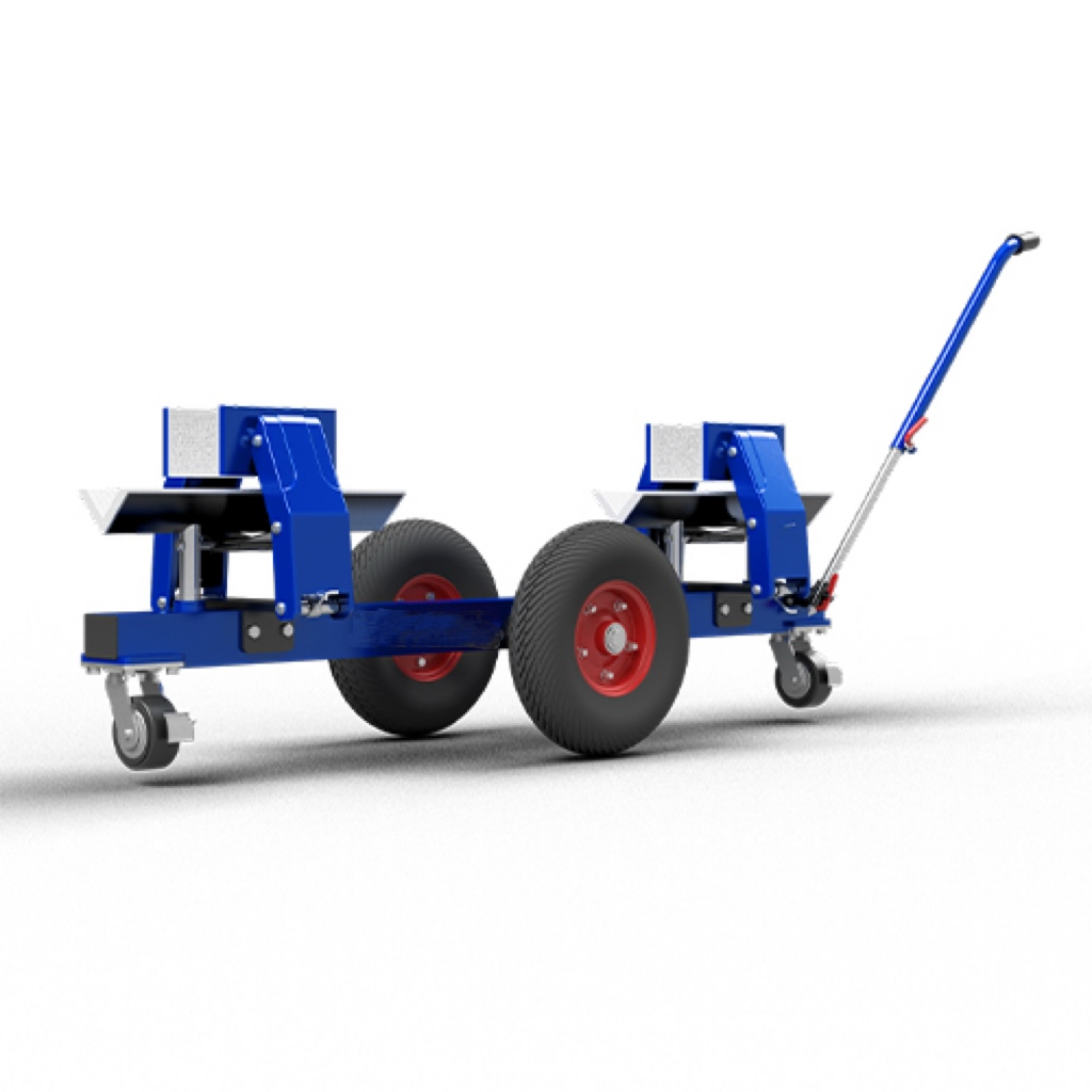 Carro profesional de transporte con doble sistema de pinzas diseñado para mover losas de piedra, porcelánico o vidrio de forma segura y sin esfuerzo. Su sistema de auto-bloqueo mantiene la losa centrada y estable durante el desplazamiento.