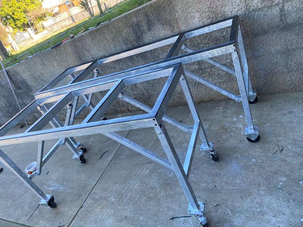 Mesa versátil y robusta diseñada para tareas de corte, desbaste y pulido de losas en taller. Su estructura reforzada y su altura ajustable la convierten en una superficie de trabajo estable, cómoda y adaptable a diferentes necesidades.