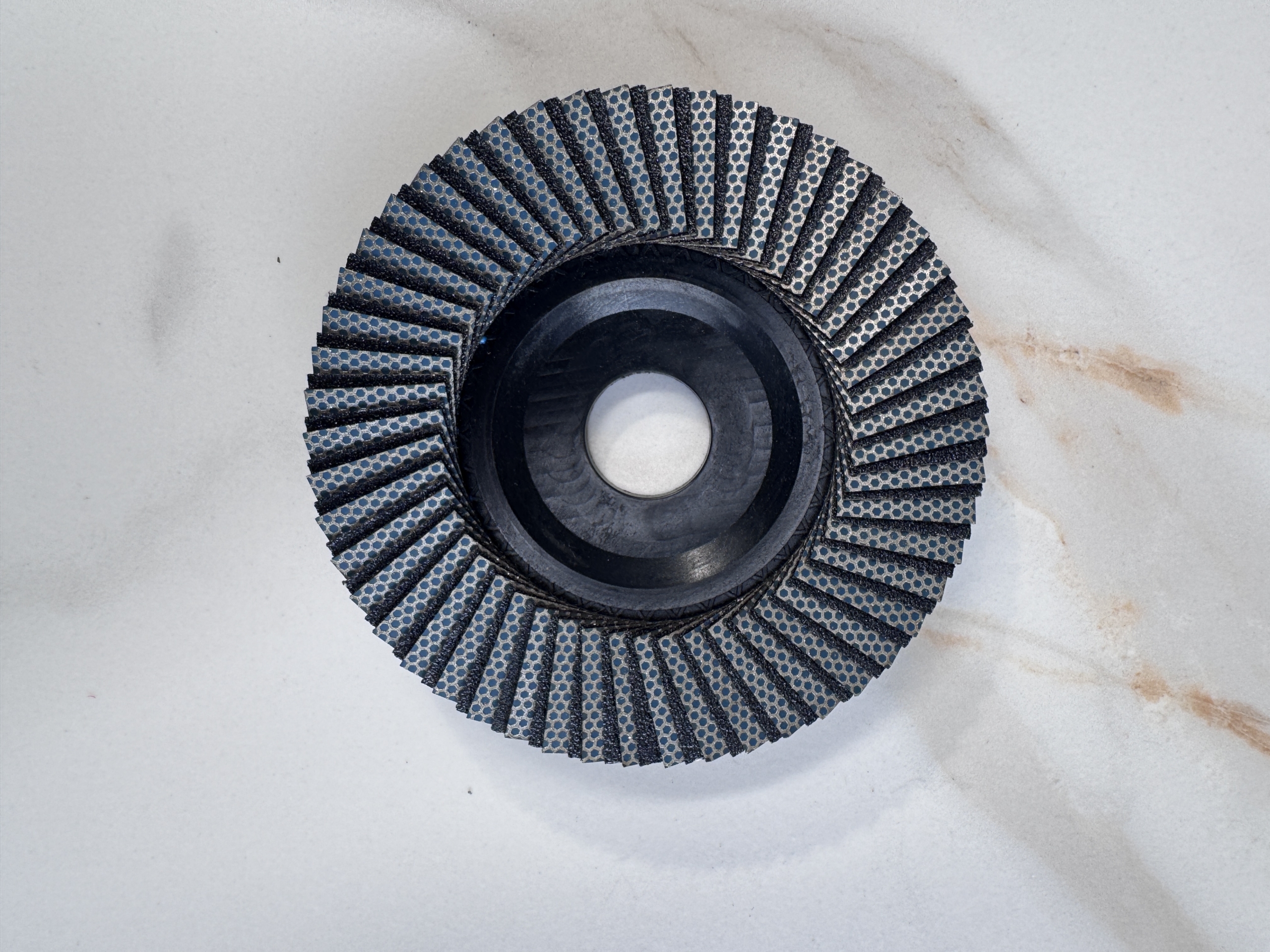 Disco abrasivo con laminas de abrasivo electro y laminas de abrasivo convencional combinadas, con un alto rendimiento para  porcelánicos, granitos, cuarcitas y mármoles.