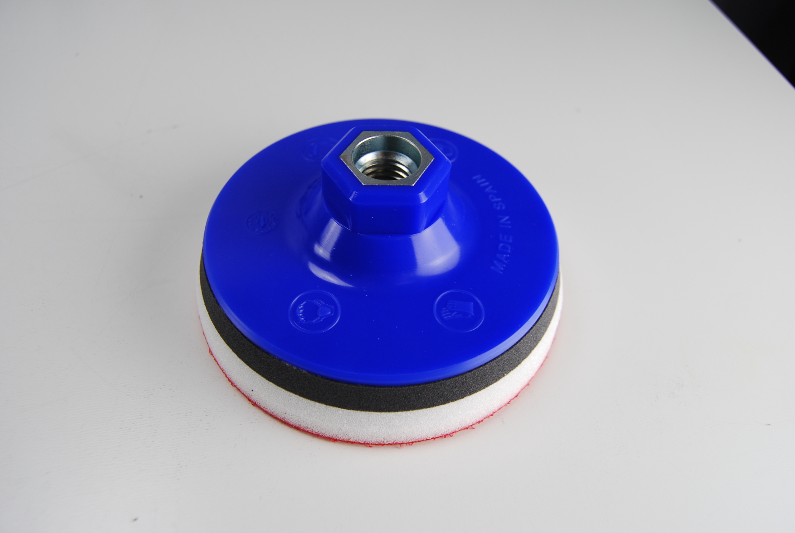 Platos de  velcro, platos goma c/tuerca M14, adaptador antivibración, son accesorios imprescindibles para el uso de algunos tipos de abrasivos de carburo de silicio, ofreciendo un ajuste seguro y de cambio rápido en diferentes aplicaciones de pulido y lijado.