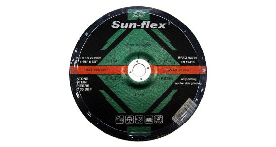 Disco de corte profesional con carburo de silicio, especialmente formulado para trabajar sobre materiales blandos como mármoles, areniscas y piedras naturales poco abrasivas.