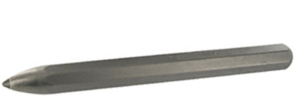 Puntero profesional con punta de widia cónica, diseñado para trabajos manuales de cantería y escultura. Su cuerpo de acero tratado garantiza una resistencia excepcional al golpe, manteniendo la precisión incluso en materiales de gran dureza.