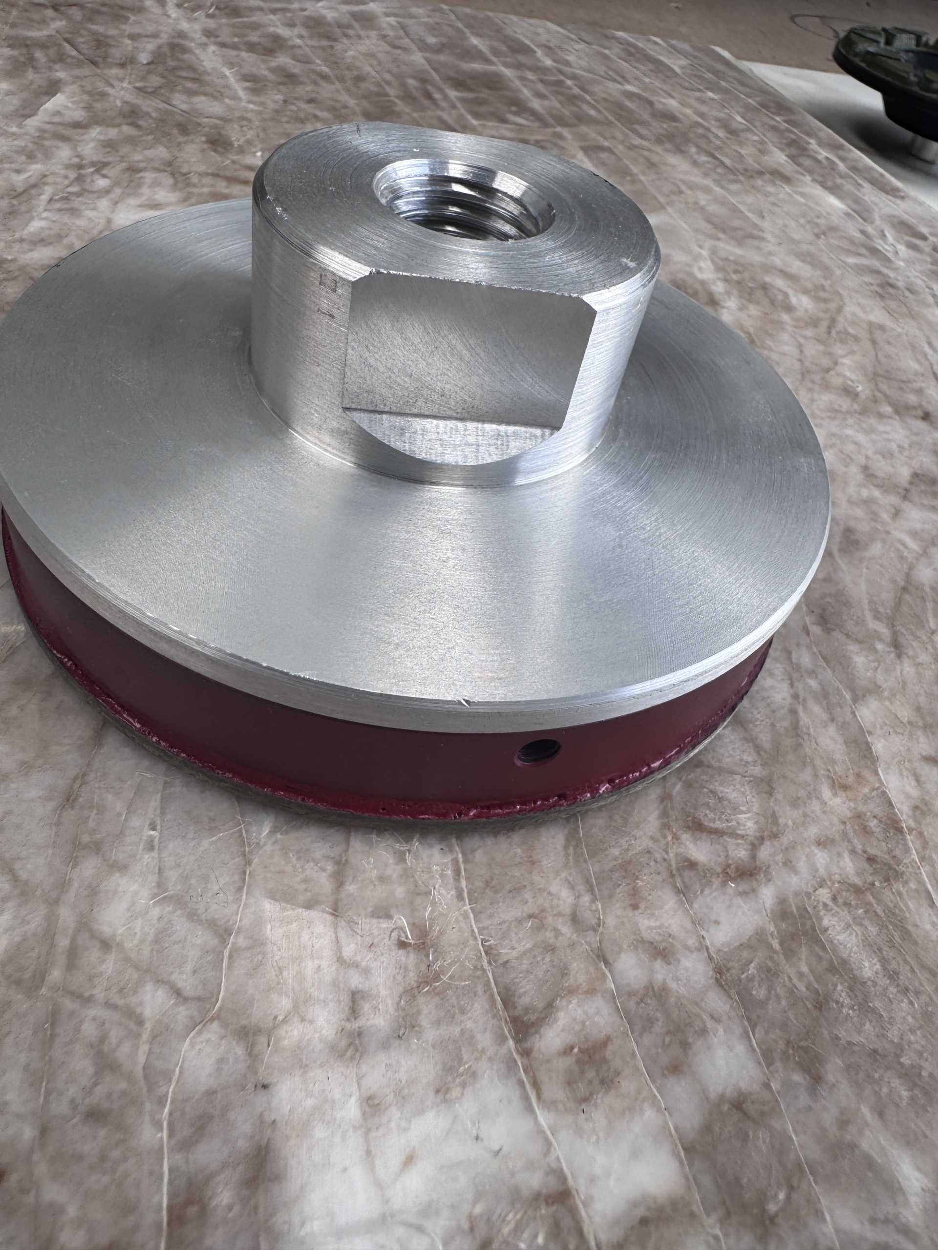 Corona sinterizada para el biselado de cantos redondeados en granitos, mármoles y porcelánicos, diseñada para máquinas de un solo cabezal.