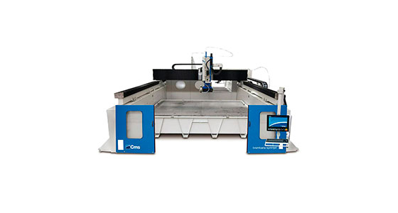 La Brembana Sprint Jet es un centro de corte CNC de cinco ejes interpolados, equipado con cabezal giratorio y banco fijo que permite realizar cualquier tipo de mecanizado sobre losas de mármol, granito, piedra sintética y cerámica, así como sobre material macizo y que incorpora un cabezal de chorro de agua independiente con interpolación a cinco ejes.