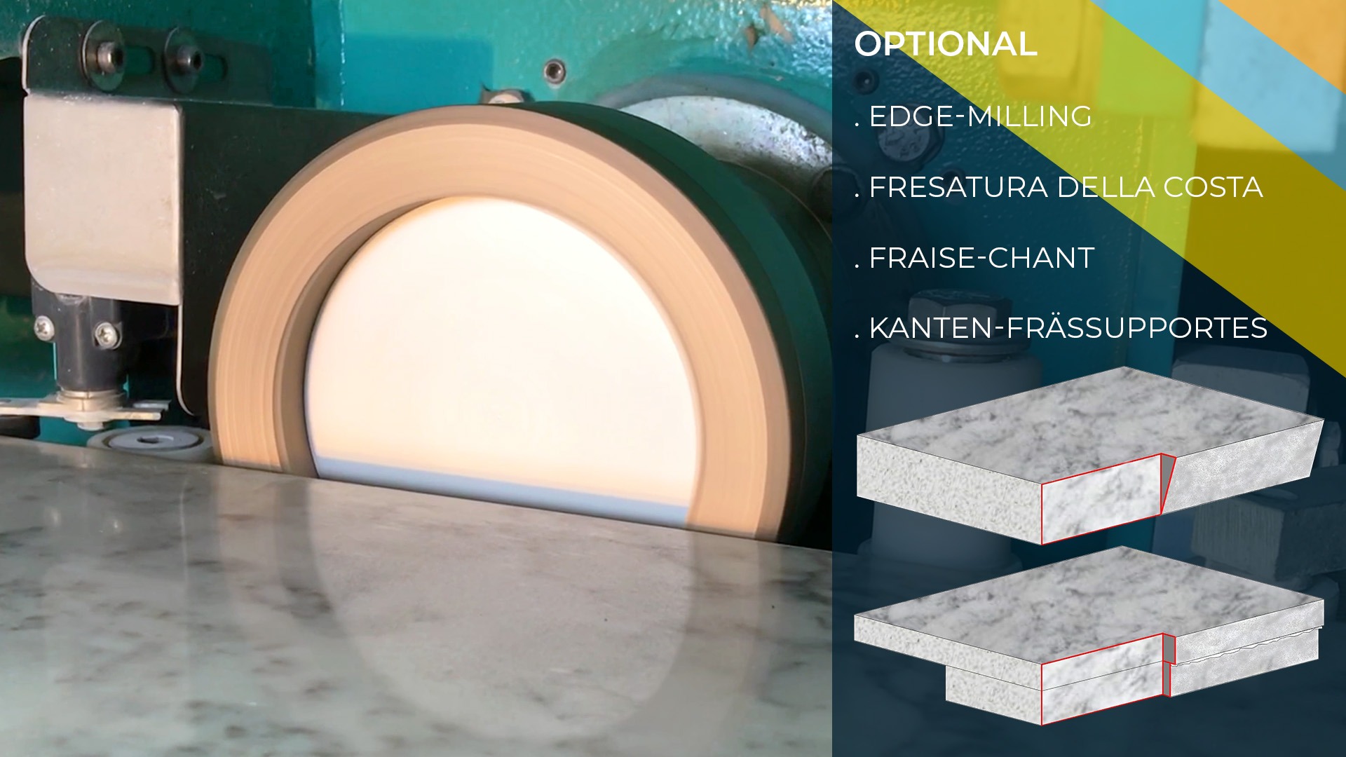 Solo 0,75 kW alimentan los seis cabezales dedicados a redondeos finos, siguiendo la filosofía Marmo Meccanica: máximo rendimiento con mínimo consumo.