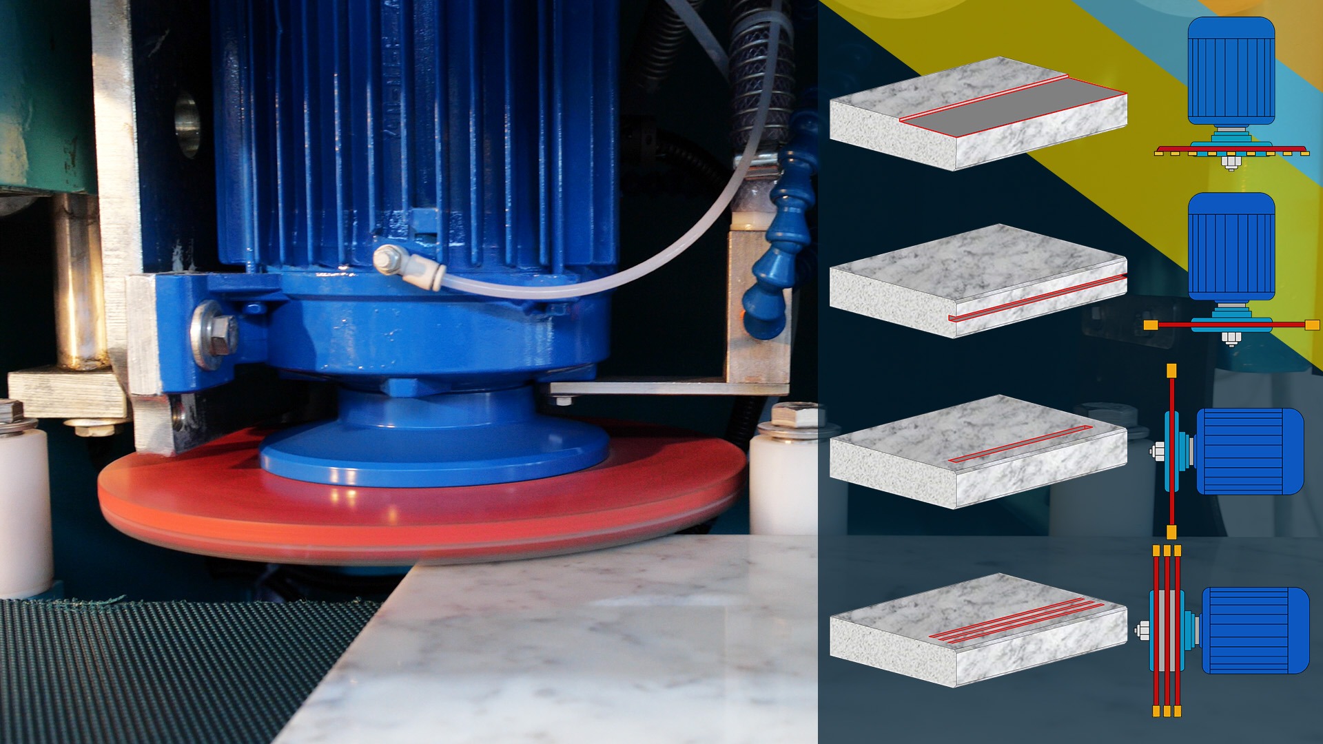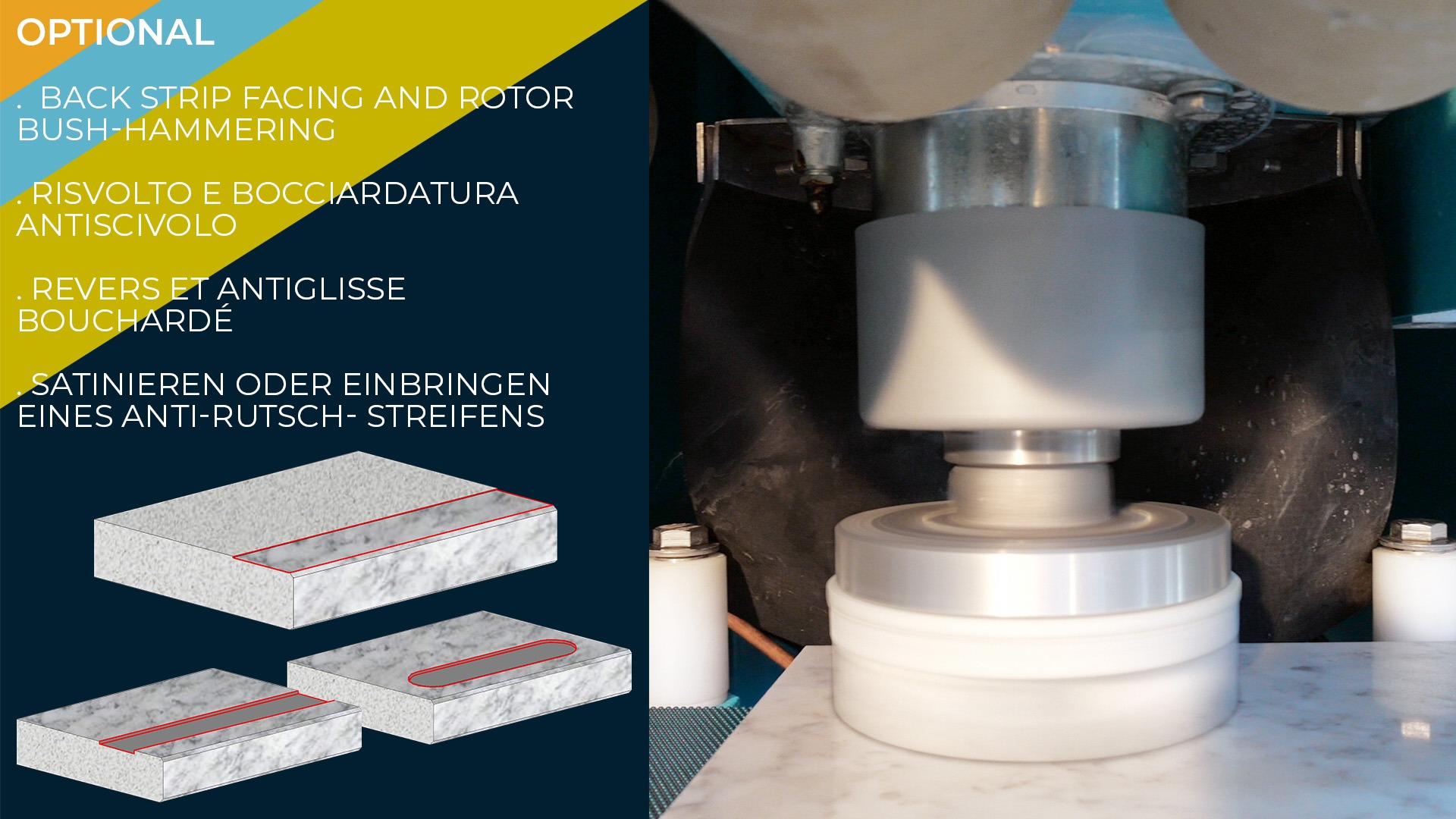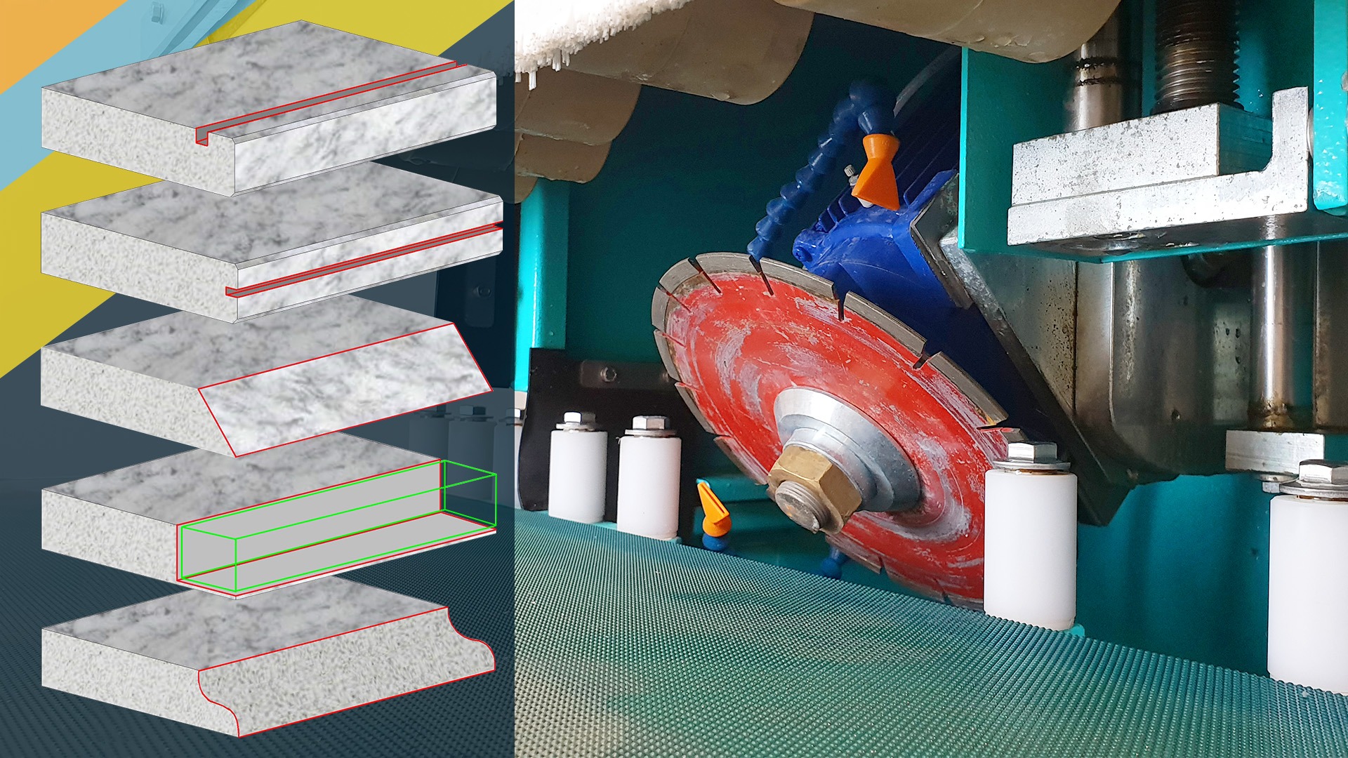 Trabaja perfectamente con piedra natural, cuarzo, materiales sintéticos y cerámica.