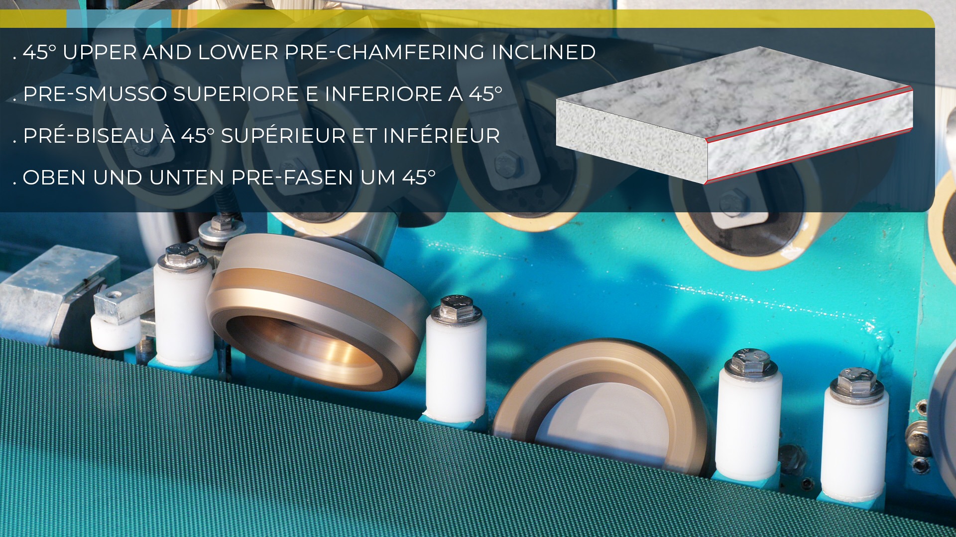 | Precorte y Biseles superiores | 1 diamante de precorte (Ø130 mm) |