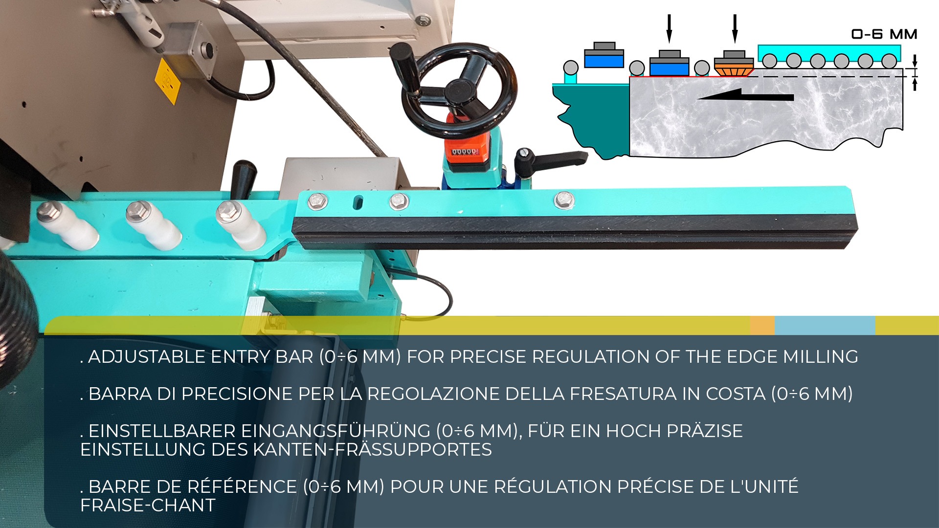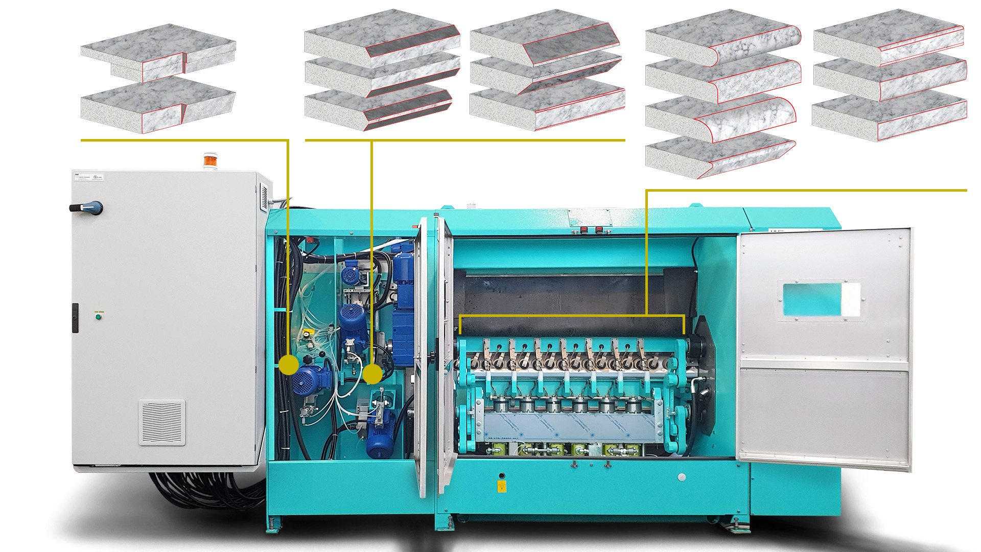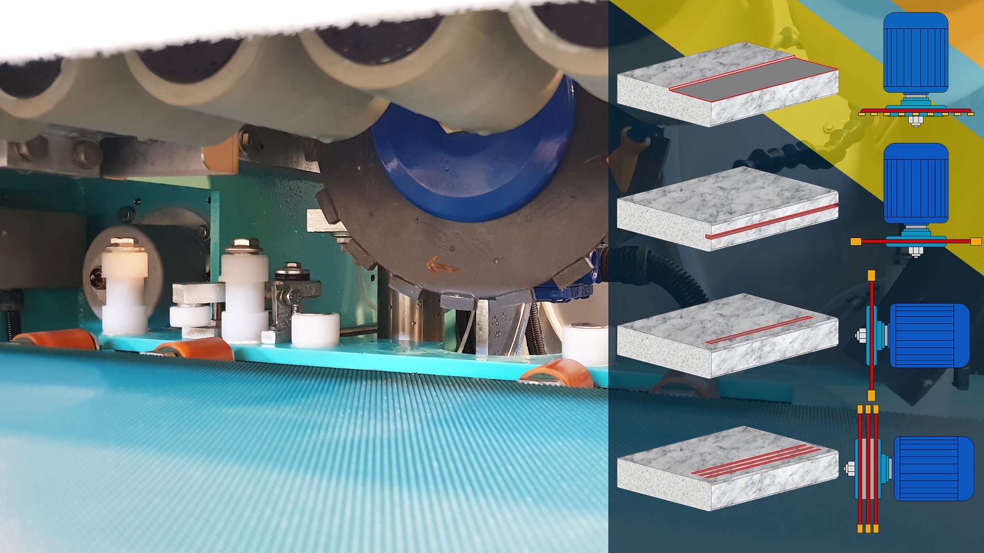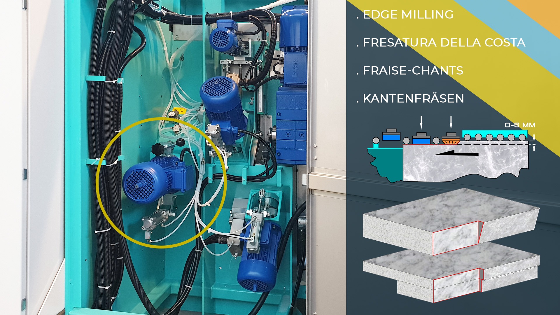 ✔ Conformado del canto mediante una única muela diamantada en forma de copa