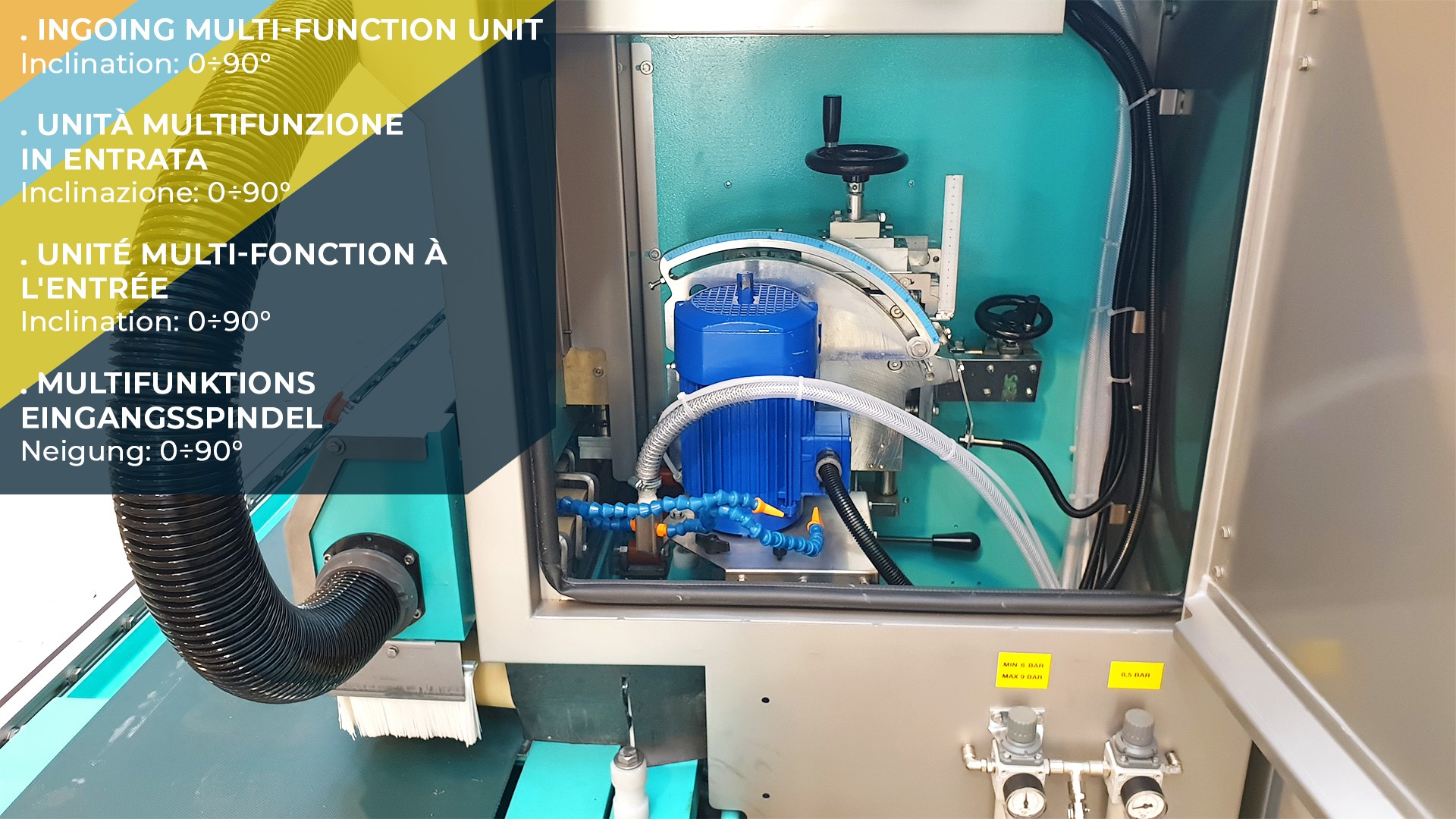 | Cabezales | 1 Muela precorte superior(Muela de diamante Ø130 mm) |